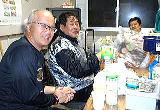 | 久々に会社の釣り仲間(左からSさんAさんHさん))と平郡島へいってきました。 平郡島はかつて私の最高記録である28Cmのメバルを釣った島です。 それだけに、期待tが大きかったのですが、最悪の結果となってしまいました。 最悪といっても事故を起こしたのではありませんよ。 雨です。 ![]() 私達の釣りは、というか私の釣り方に合わしてもらったので、私の釣りはと言ったほうが良いかもしれませんが、夕方から翌朝まで波止場を歩き回って大物をゲットします。 しかし、ちょうどその夕方から翌朝まで大雨となってしまいました。 実を言うと雨が降ることは天気予報で事前に分かってはいました。 分かってはいたが降っても大した雨にはならないとタカをくくっていたのです。 ![]() しかし、雨は予想とをはるかに超えて降りそそぎました。 ですから、釣るシーンの写真は一枚も有りません。 右写真の皆様のようにフェリーを下船する前からカッパを着る羽目になってしまいました。 次にカッパです。 雨の予想はしていたので当然カッパは用意していました 。着れば濡れないというのがカッパの一般的な概念で、誰も信じて疑いませんでした。 雨が降ろうが雪が降ろうがカッパさえ着ればもう大丈夫です。濡れることはありません。 安心して大物ゲットに専念できるはずです。 しかし、その概念は予想を上回り一晩中降り続いた雨によって見事に覆えされてしまいました。 全員全身びしょ濡れです。 ![]() 寒いです。 右写真中央のAさんは、カッパの性能が良くなかったのか特によく濡れたようでビニール袋をまとい寒さに耐えておられました。 気の毒です。 でも私達は一晩中耐えました。 大物ゲットに希望を託して。 なのにどうでしょう、釣れるのは大きくても20Cmのアジ、メバルにおいては殆どが15cm以下「メ」ばかりです。 尺メバルはどこへ行ったのでしょうか。 なぜ釣れないのか、フェリーの待合所でコーヒー等を飲みながらミーティングを行います。 上写真はミーティング中の写真 夜が更けるに連れ寒さも増しミーティングの数も増えていきました。 ミーティングは数回実施しましたが結局成果に繋げることは出来ませんでした。 残念です。 みんな笑顔ですが、一晩中全身びしょ濡れの寒さとの戦い本当にご苦労様でした。 私もこんな経験は初めてです。 普通雨が降ったら避難するのですがねー。 次回は黒島です。 皆さん、これに懲りずにまた参加してくださいね。 |