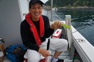 遊漁船比呂丸でハマチを釣りに行きました。![]() 前半なかなか食いが悪く餌のイワシはよく付いて 巨大なハモとか大きなカマスは食ってくれるものの、肝心のハマチがなかなか食ってくれません。 8人乗船者の内2人が1匹ずつ釣って後は”ぼうず”かなと思っていましたが、後半は良く釣れました。 平均1人2匹位、多い人で5匹少ない人は1匹といった具合で人によりばらつきはあるもののよく釣れました。 私は初めての青物釣りで最初4号のハリスで1発で切られてしまい、船長からハリス10号の仕掛を買ってやっと1匹釣ることができました。 私1人が電動ではなく手巻きなので、釣り上げるのにン十分堪能して1匹で大満足でした。 電動が楽ですけどね。 ![]() ![]() |