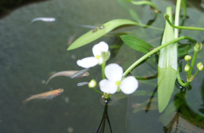 昨年トピックスに載せて、もう1年がたちました。 今年も我が家の玄関に置いてある水瓶の中で、水草が可憐な花を咲かしました。 昨年の今頃は、最後の1匹のメダカが死んでしまって少し寂しい思いをしていましたが、今年は10匹以上住んでいて水瓶の中もにぎやかです。 陶芸仲間のメダカ好きの方から譲っていただきました。 今年はこの10匹のメダカが夏のボウフラをやっつけてくれます。 6年前も4匹程度のメダカを入れたのですが、何故か少しずつ減っていきました。 私が思うに鳥の仕業ではないかと思います。 どんな鳥かは分かりませんが今年から水瓶の上をネットで覆ってやることにしました。 メダカ君、鳥対策はバッチリなので頑張ってボウフラを食べてね。 |