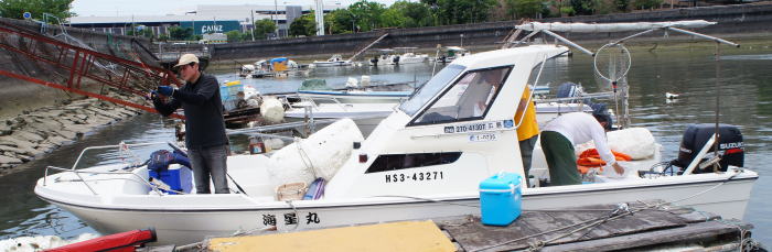 一ちゃん先生の知り合いの船、海星丸に乗せていただきました。